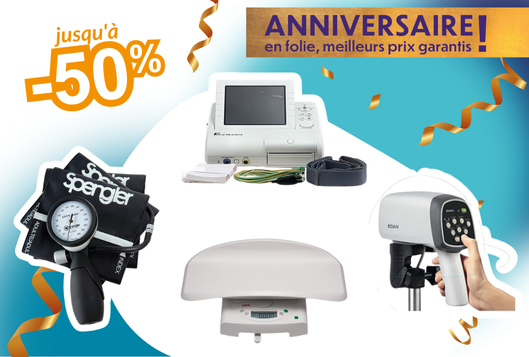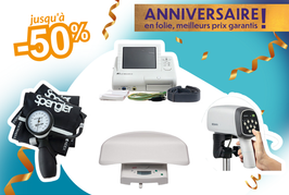 Pèse-bébé, moniteur foetal, video-colposcope, tensiomètre... en promotion Anniversaire !
