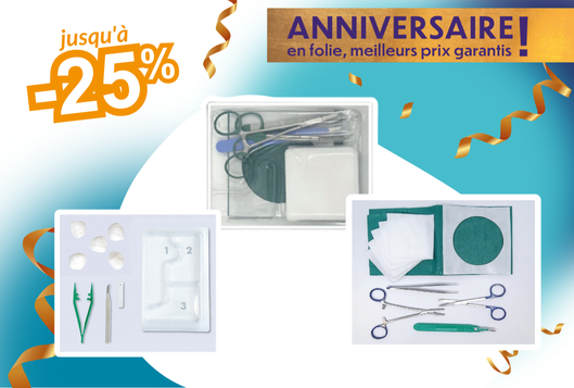 Sets d'intervention, sets de suture, sets d'ablation de suture… en promotion anniversaire !