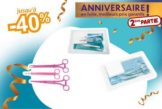 Set de pose de stérilet, Sets d'intervention, sets de suture… en promotion anniversaire !