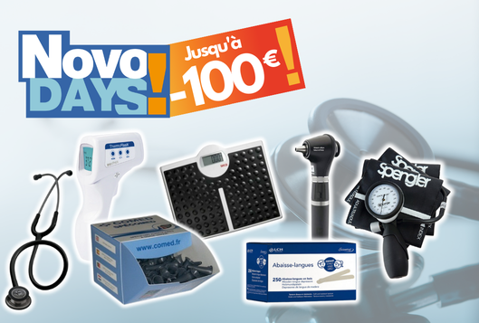 ECG, pèse-personnes, pèse-bébés, stéthoscopes, bandelettes urinaires, lecteurs de bandelettes urinaires..en promotion pour les Novodays !