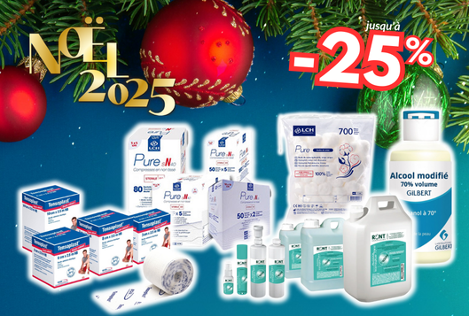 Compresses en non tissé, bandes adhésives, pansements, sparadraps…… en Promo Noël !