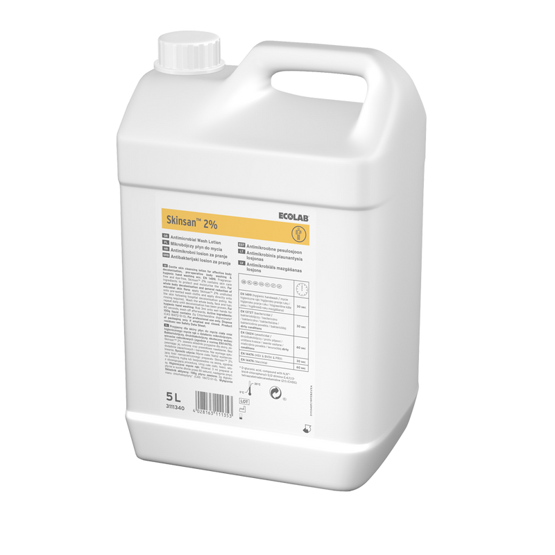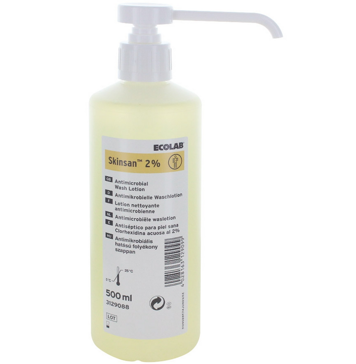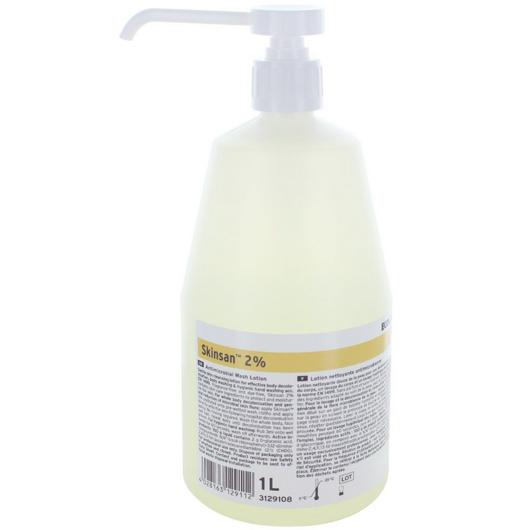 Le savon antimicrobien Skinsan est une lotion lavante qui offre une efficacité à large spectre. Cette lotion permet un lavage hygiénique des mains et une décolonisation efficace du corps. Elle contient 2 % de chlorhexidine pour une action antimicrobienne optimale.